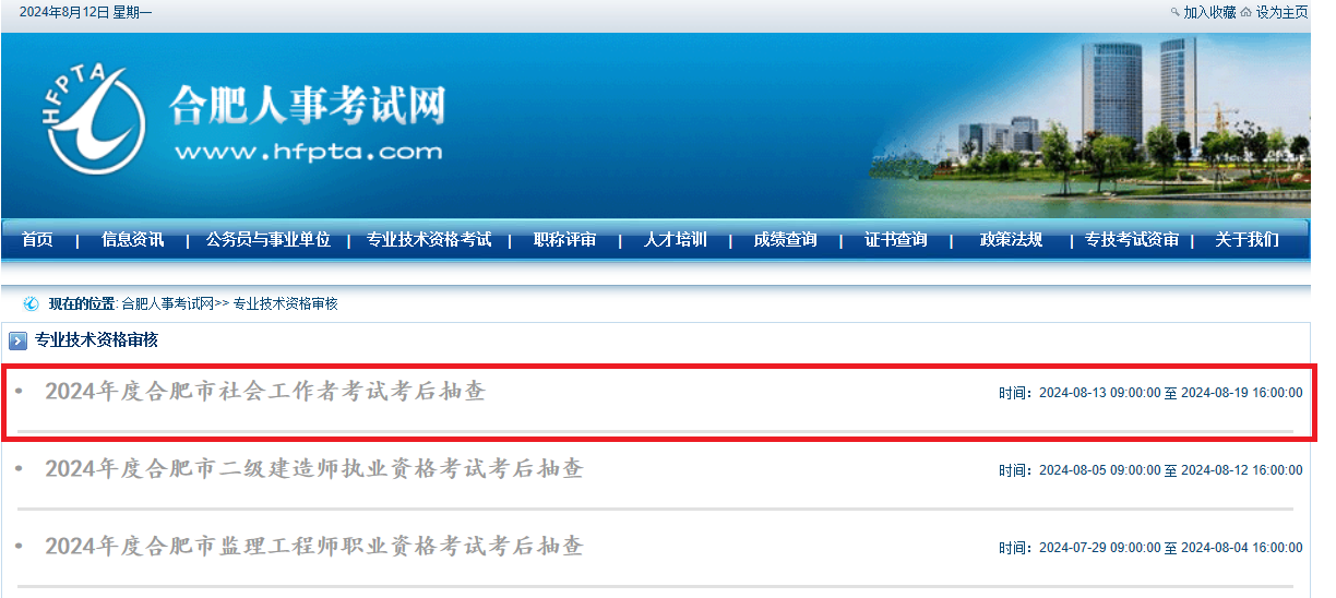 抽查工作采取線上審核方式進(jìn)行?荚嚦煽(jī)合格者(名單見附件5)需在8月13日至8月19日登錄合肥人事考試網(wǎng)(wjjxw.com),按要求上傳相關(guān)證明材料。步驟如下: