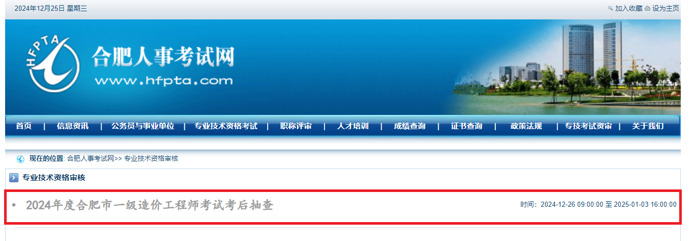 1、登錄合肥人事考試網(wǎng)(wjjxw.com)點擊“專技考試資審”欄目(如附圖1)。