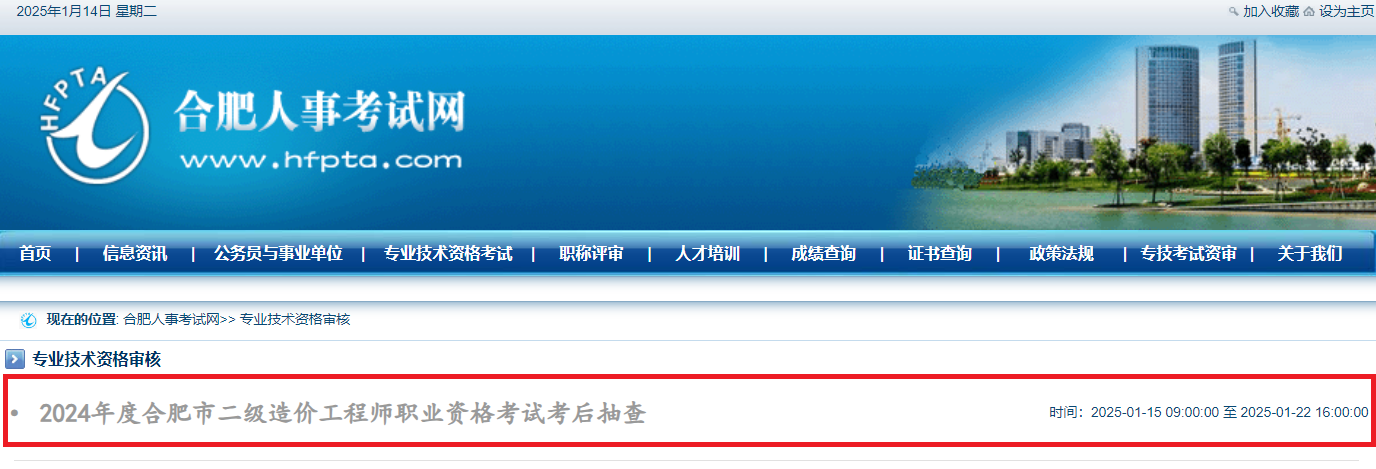 抽查工作采取線上審核方式進(jìn)行。考試成績合格者(名單見附件5)需在2025年1月15日至1月22日登錄合肥人事考試網(wǎng)(wjjxw.com),按要求上傳相關(guān)證明材料。步驟如下: