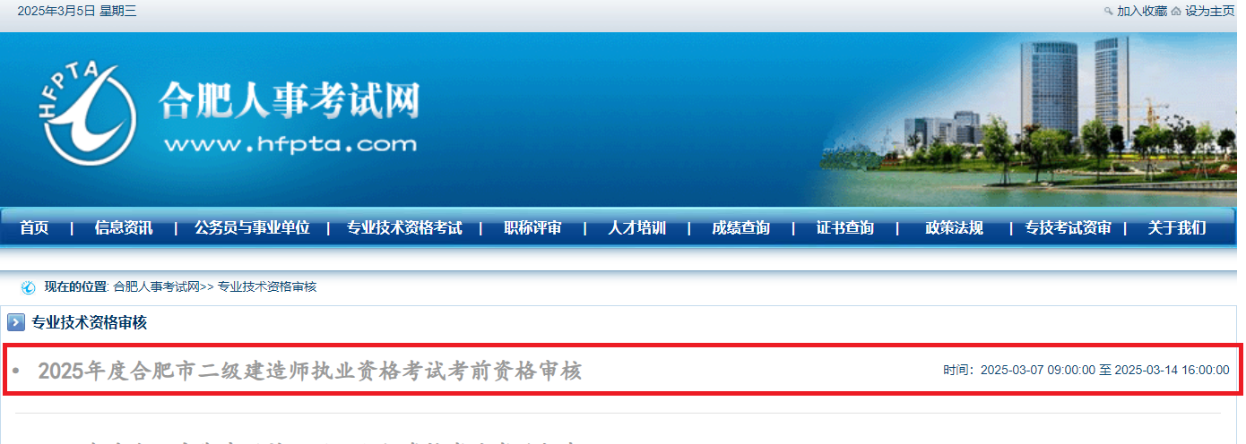 根據(jù)省人社廳的工作部署,現(xiàn)將2025年度合肥考區(qū)二級建造師執(zhí)業(yè)資格考試考前人工核查工作通知如下。