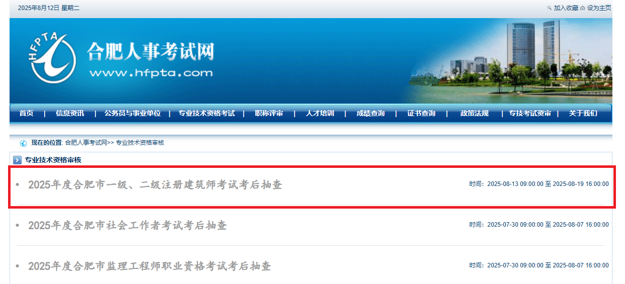 根據(jù)專業(yè)技術(shù)人員職業(yè)資格考試報(bào)名證明事項(xiàng)告知承諾制有關(guān)要求,擬于近期開展合肥考區(qū)2025年度一、二級(jí)注冊(cè)建筑師資格考試成績(jī)合格人員踐諾情況抽查工作,現(xiàn)將有關(guān)情況通知如下。