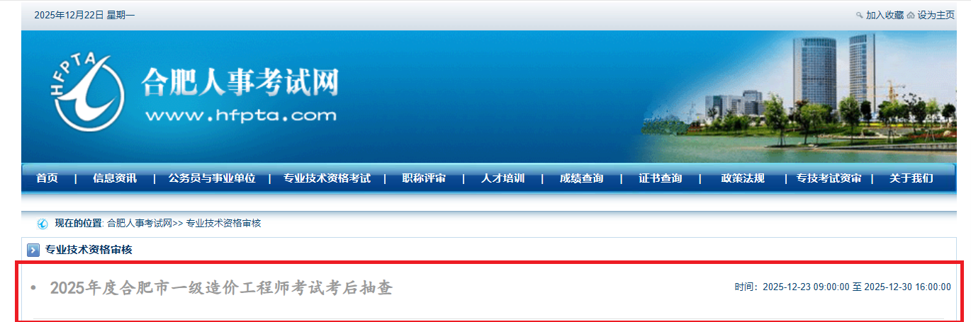 根據(jù)專業(yè)技術(shù)人員職業(yè)資格考試報(bào)名證明事項(xiàng)告知承諾制有關(guān)要求,擬于近期開(kāi)展合肥考區(qū)2025年度一級(jí)造價(jià)工程師職業(yè)資格考試成績(jī)合格人員踐諾情況抽查工作,現(xiàn)將有關(guān)情況通知如下。