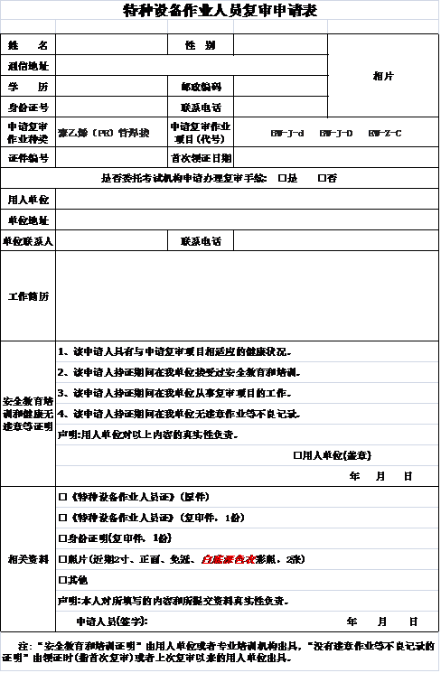 特種設(shè)備焊接操作人員復(fù)審考試申請(qǐng)表