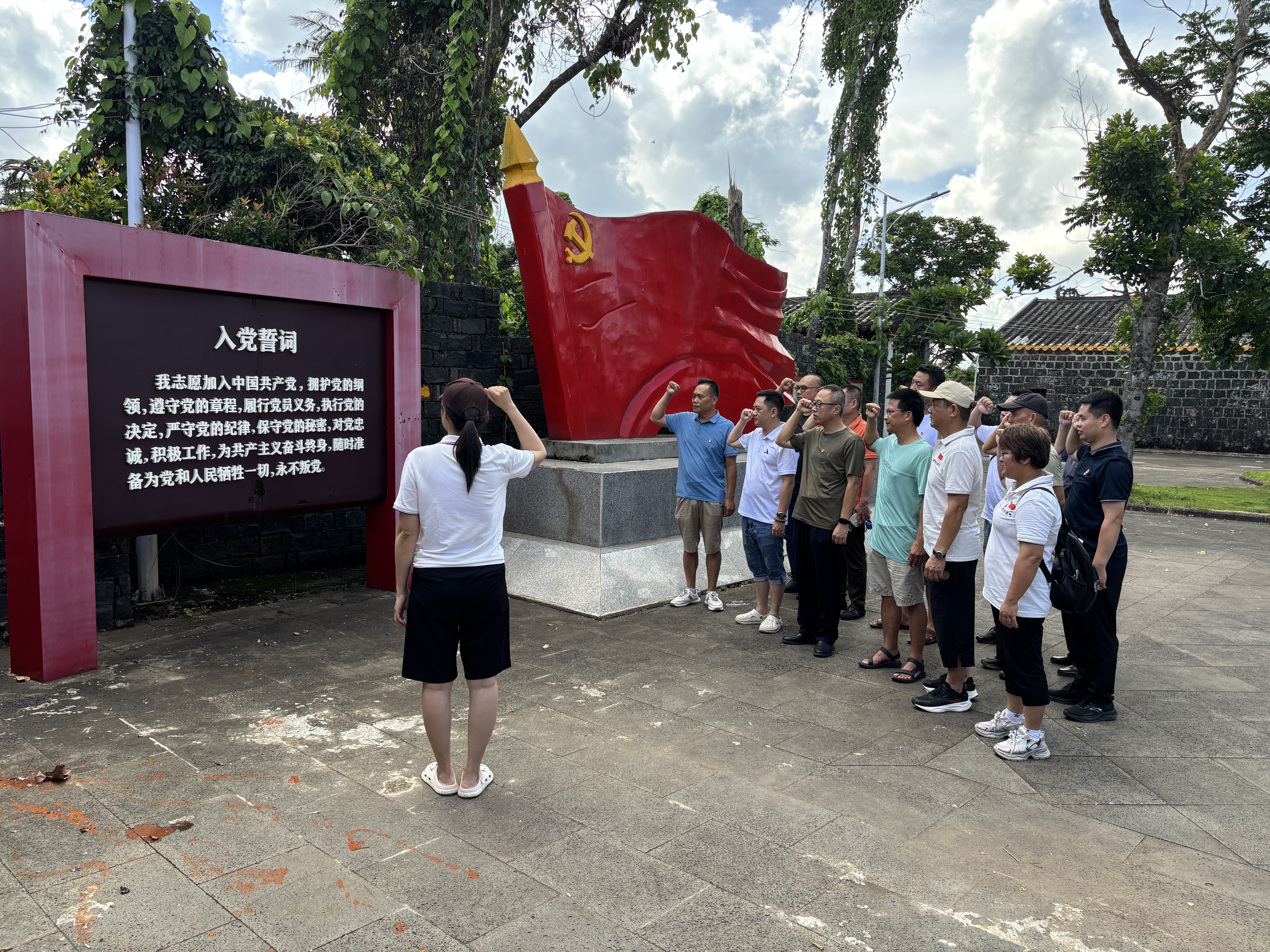 6月28日上午,民生燃?xì)獾诙h支部組織黨員前往海口市新坡鎮(zhèn)仁臺村革命根據(jù)地舊址開展主題黨日活動。在仁臺陳列館,黨員們通過參觀珍貴的歷史照片和實物展品,深入了解1928年馮白駒同志在此領(lǐng)導(dǎo)革命斗爭的光輝歷史。面對鮮紅黨旗,全體黨員重溫入黨誓詞,鏗鏘誓言在革命舊址久久回蕩。