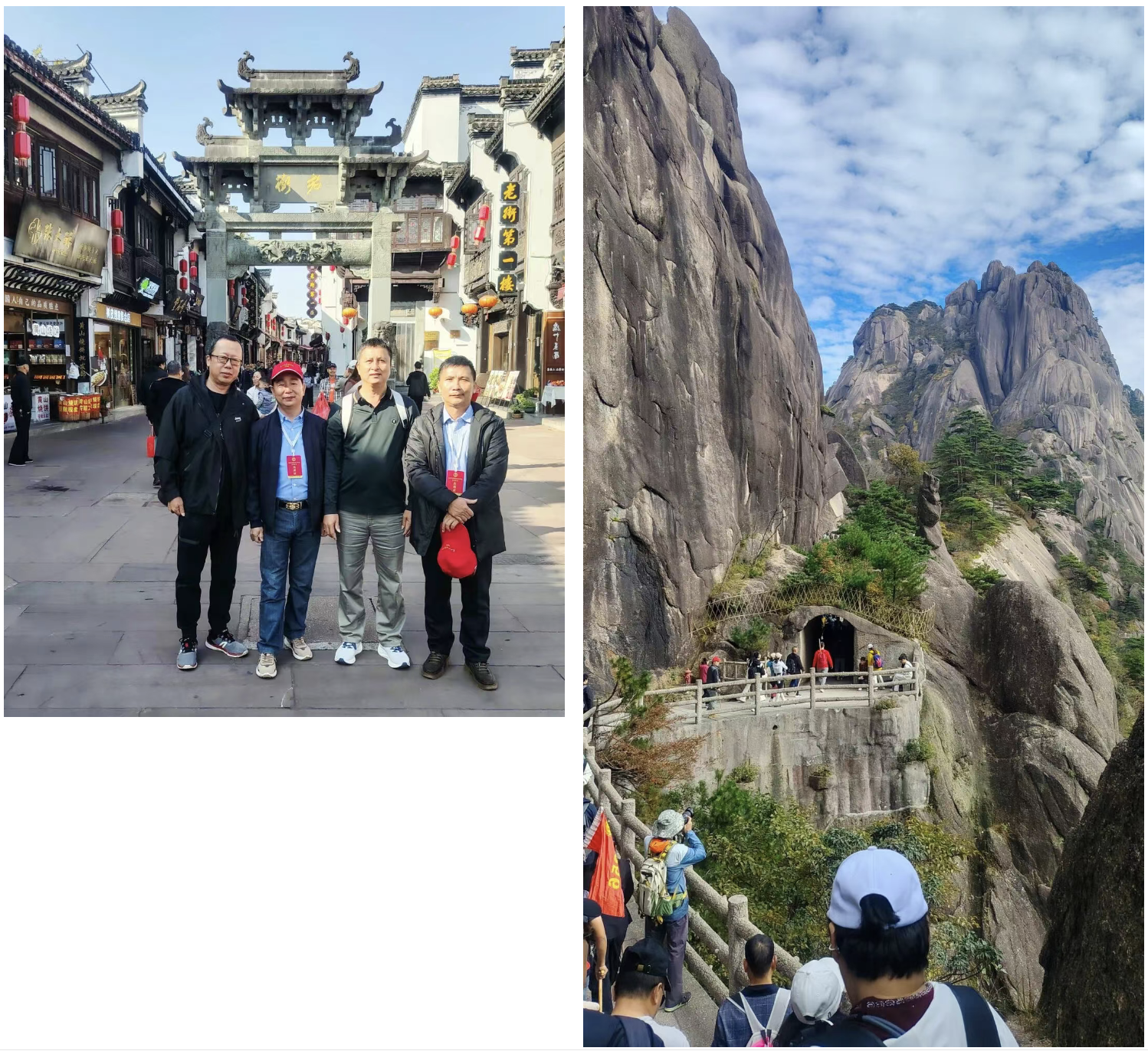 行程中,大家漫步于世界自然與文化遺產(chǎn)黃山的云海之中,觀奇松、賞奇石。流連于徽州古城的水墨詩意,也走進紅色革命教育基地——新四軍軍部舊址紀念館,重溫紅色革命精神;在徽州茶葉文化博物館,大家通過各類采茶、制茶非遺技藝與文物展示感受青磚黛瓦間的茶香氤氳。五日的行程于世界文化遺產(chǎn)地宏村古民居結(jié)束,旅行期間大家于黃山工人療養(yǎng)院休養(yǎng)中心進行休養(yǎng)。